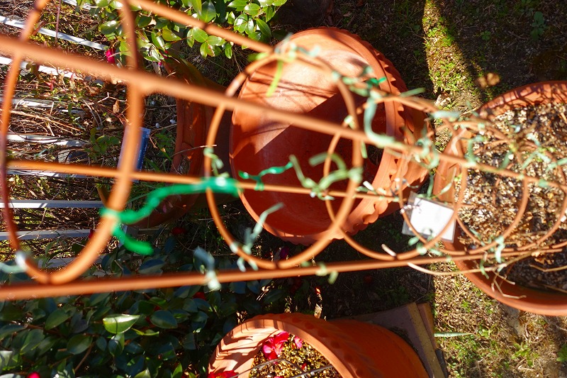 作業内容は、クレマチスのつる誘因の不要のビニタイ外しなど。