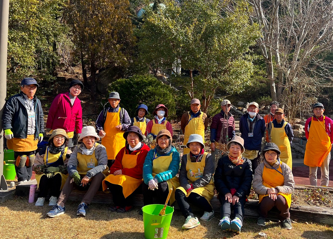 公開空地花壇と植物園(花の文化園)のボランティアvolunteerの、