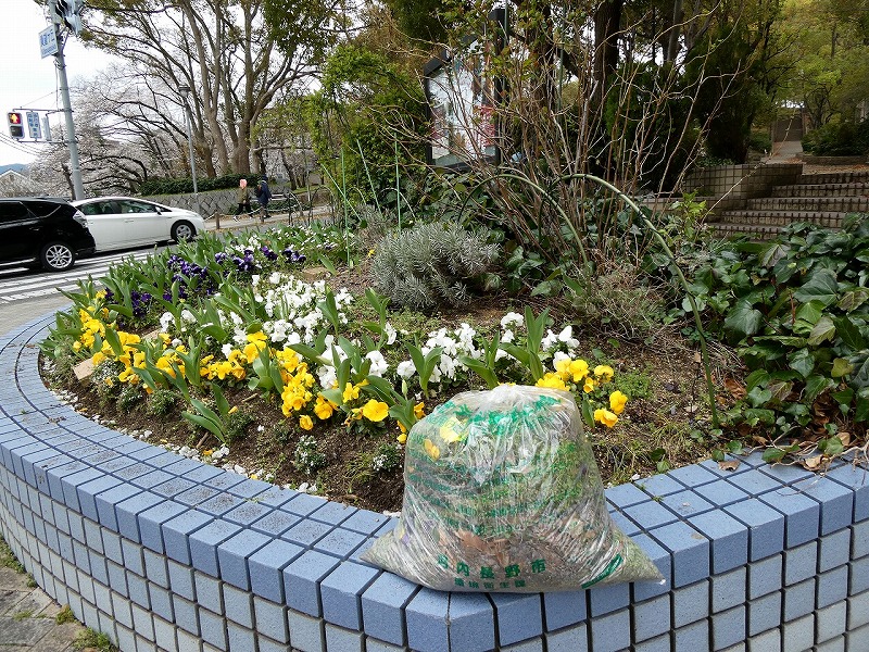 ふれあい花壇花格子の会の交差点花壇です。久しぶりに草取りができました。