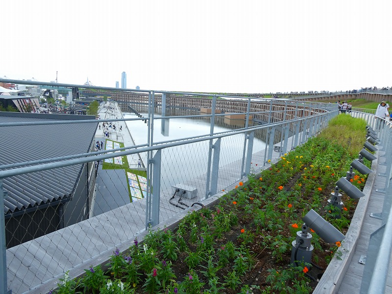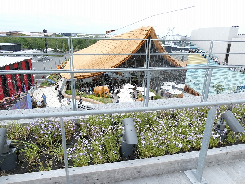 その植栽管理の職員さんをみたり、会場内の屋根の緑化を見下ろしたり、次期開催国の壁面緑化などをみたり。午前10時半入場午後7時までいても、とにかく、中国パビリオンで三千年前の三星堆遺跡(中国wikipedia)の考古遺物である青銅神樹をじっくり見た以外は、