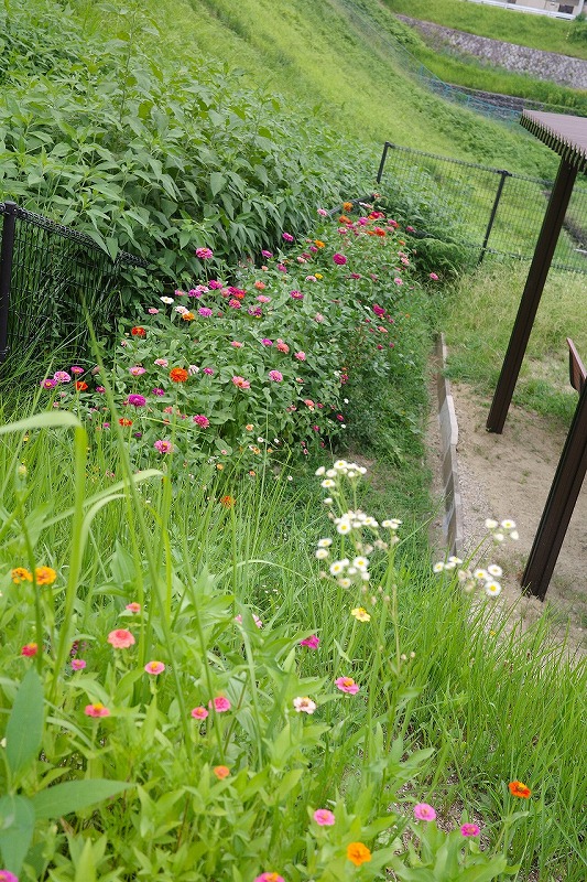 お盆休み中も週3回程程水やりに通った 花の文化園の浅型プランターのたねダンゴ🄬 は、8月19日(火)に片づけました。
