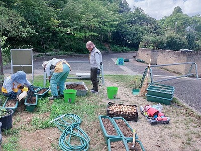 種まきと苗の植え付け準備です。