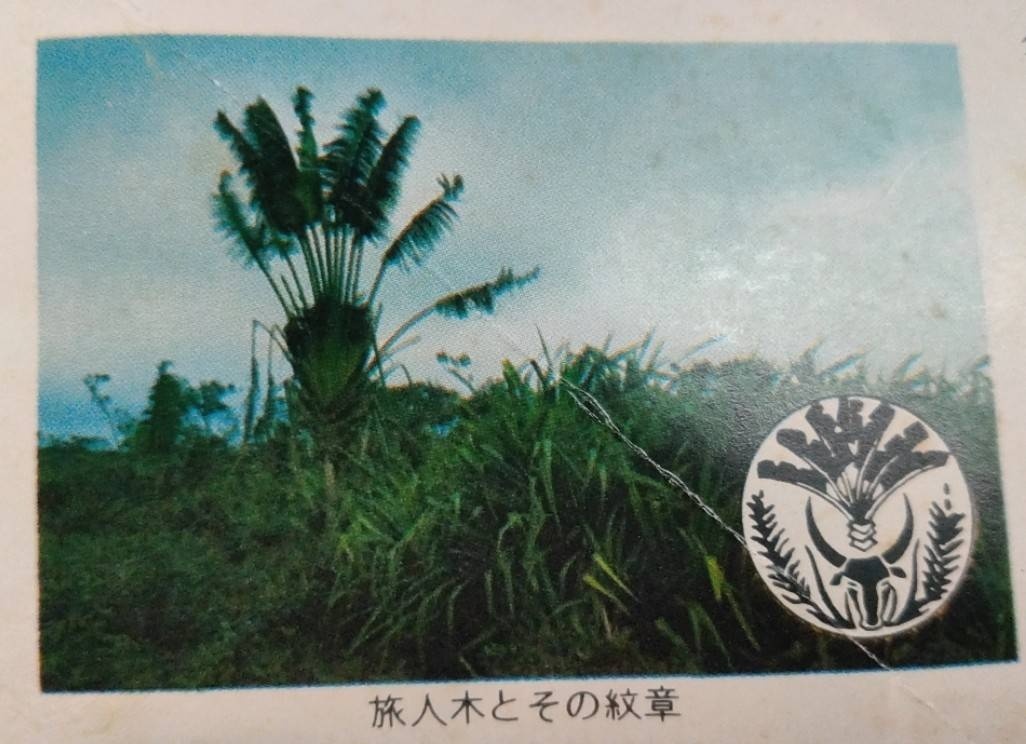 日本のみなさんに,もっともっと知ってほしいのですが、マダガスカルはじつにすばら しい"花の楽園"です。そのたくさんの花や木についてくわしく説明するには、1冊の本 でも足りないほど。ここでは,そのうちのふたつを簡単にご紹介することにしましょう。 まず,マダガスカルを代表する木が,RAVE-NALAとよばれている「旅人木」(traveller's tree)です。高さ10メートル前後で,大きな葉を日本の扇の形のように整然とつけていま すが、何といってもこの木が有名なのは,葉柄基部に水を貯え,のどの渇いた旅人が切っ て飲むことができるからでしょう。刃物でキズをつけると,クセのない清水がほとばしり出てきます。この木は,わたしたちの国の象徴であり,国の紋章になっています